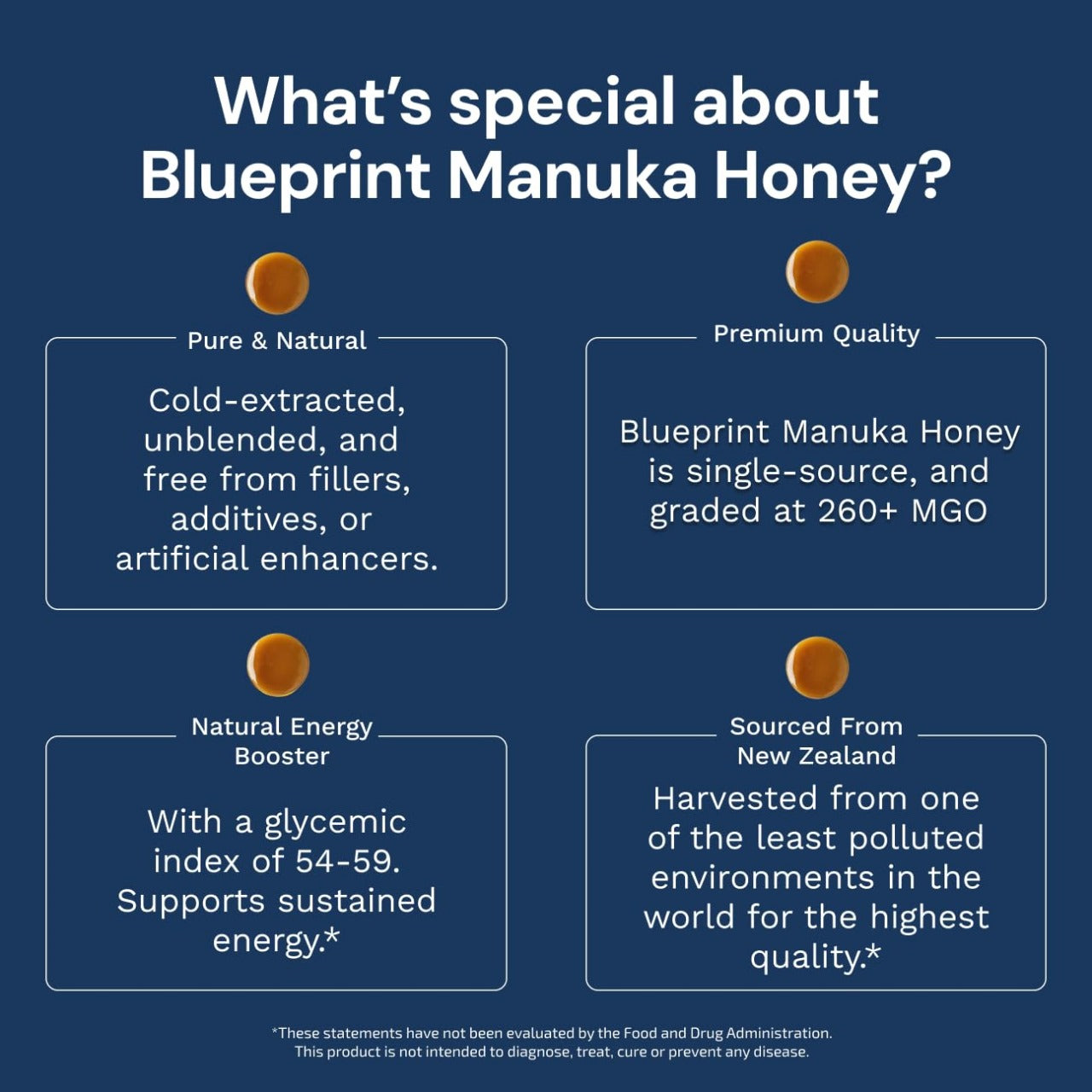 High Quality: Blueprint Manuka honey is 260+ MGO*