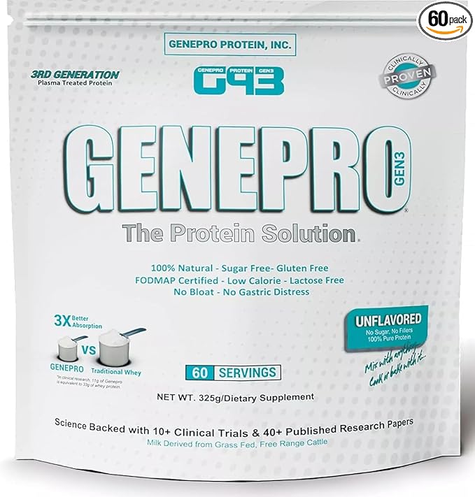 Genepro Protein Powder Unflavored, 60 Servings New Formula - Lactose-Free, Gluten-Free, & Non-GMO